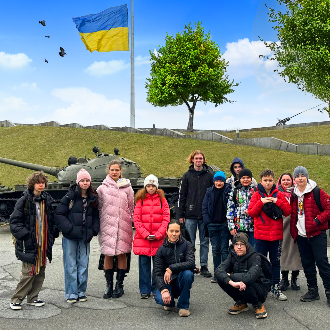 До другої річниці війни в Україні ми в ліцеї організували екскурсію до національного музею — меморіального комплексу історії України у Другій світовій війні. А саме — на виставку про російсько-українську війну «Україна — розп’яття».