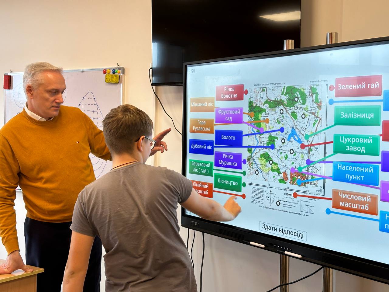 За допомогою панелі школярі виконували різноманітні інтерактивні вправи від учителя інформатики на ознайомлення та закріплення лексики — від викладача англійської мови.