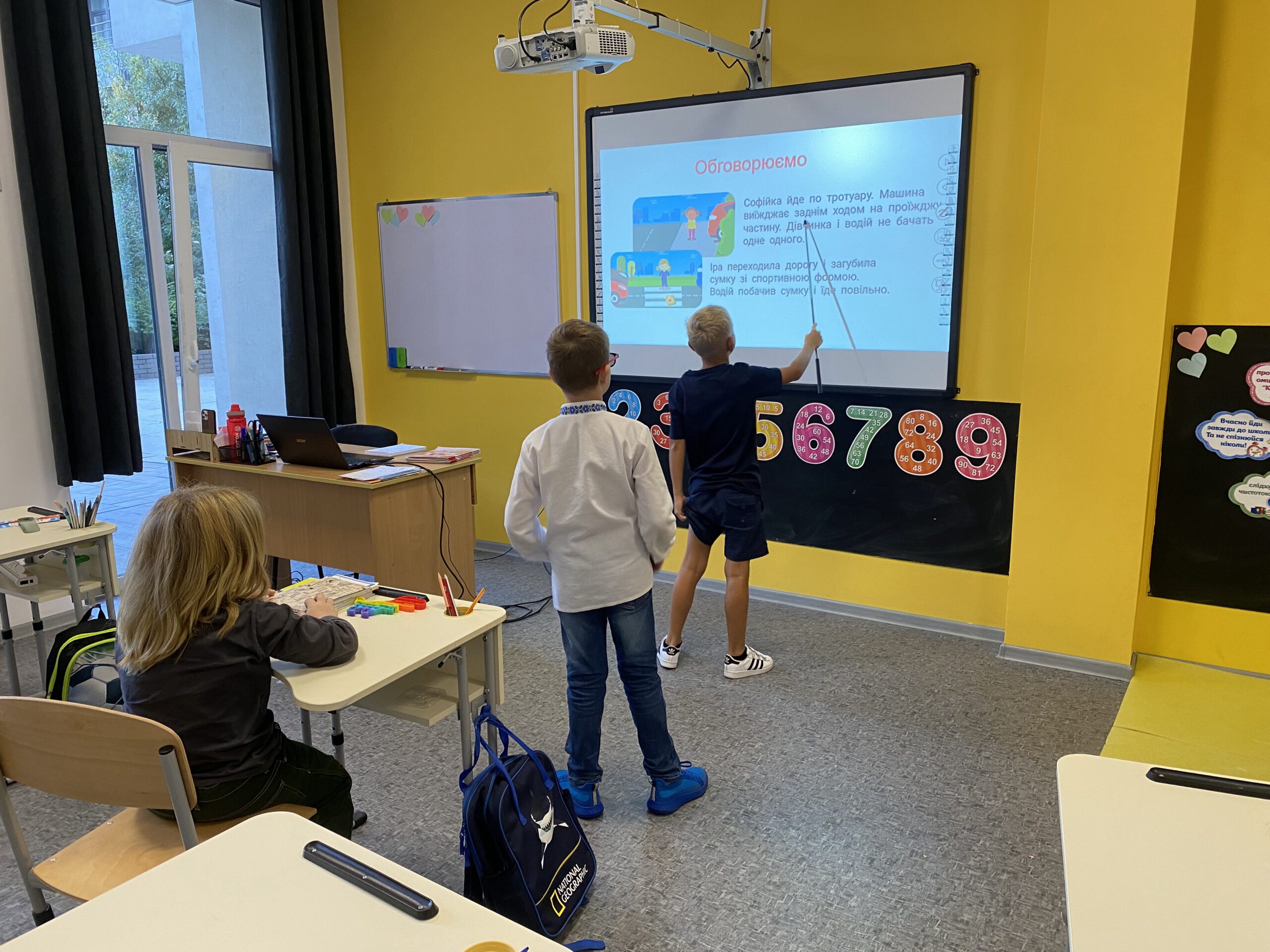 - Вчителі — розв’язували приклади, писали есе, працювали з інтерактивною дошкою.